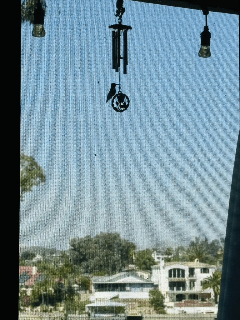 The hummingbirds do love my balcony. They spend a lot of time flying around and perching themselves on the wind chimes and lights. Here’s one of the little guys just hanging out. He’s been sitting there a good 5 minutes or so. The birds are one of my happy places.