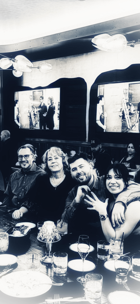 On our way home from San Diego all Kevin could do was talk about how much he loved Jagger and how excited he was to engage her. When he dropped me off he got out of the car and walked me to the door. He gave me the biggest hug and thanked me for being his mama. Made me cry. He then said to me, “mom, I can’t get engaged if you’re not there. Will you come to Vegas and join us for the celebration dinner.” Ummm, yeah, I’ll cancel all my plans and I’ll be there. Of course John was a little shocked and then he got super excited too and off we went to Vegas to celebrate with my son and soon to be daughter, her mom and dad and her brother and his soon to be fiancé’.