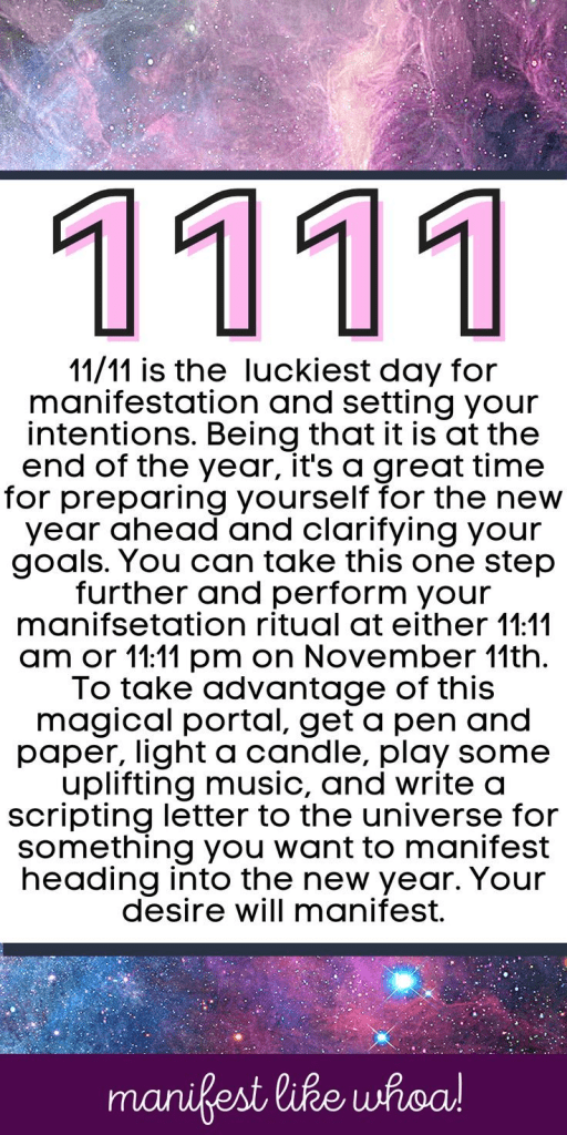 Elle.com in the same article mentioned above goes onto say, “11/11 in the calendar is famous amongst astrologers and numerologists as being one of the most powerful days of the year for manifesting.”