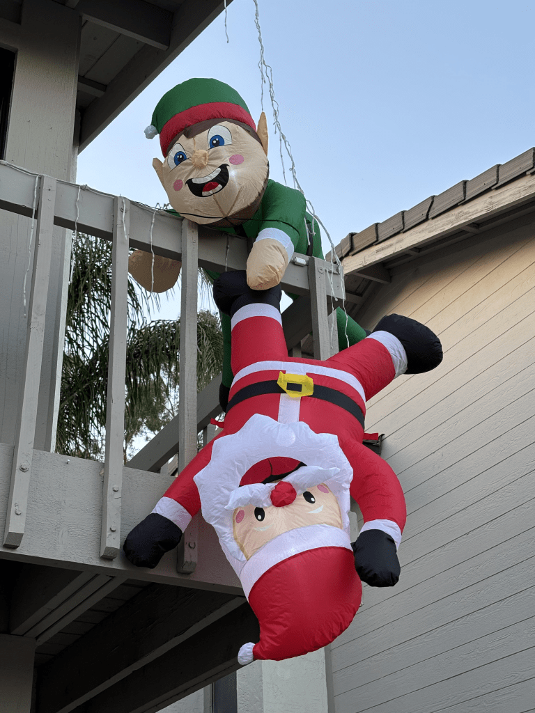 Haha, nope. All me. It was his idea to decorate the outside in elves, but the rest of the elf stuff is all me