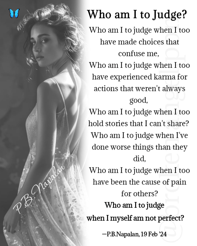 I ask God all the time to help me rid the judgmental tendencies that still try to pop their evil head within me. When I do judge someone He kindly reminds me how unkind that is and that it’s not my place to judge by giving me that feeling of remorse.