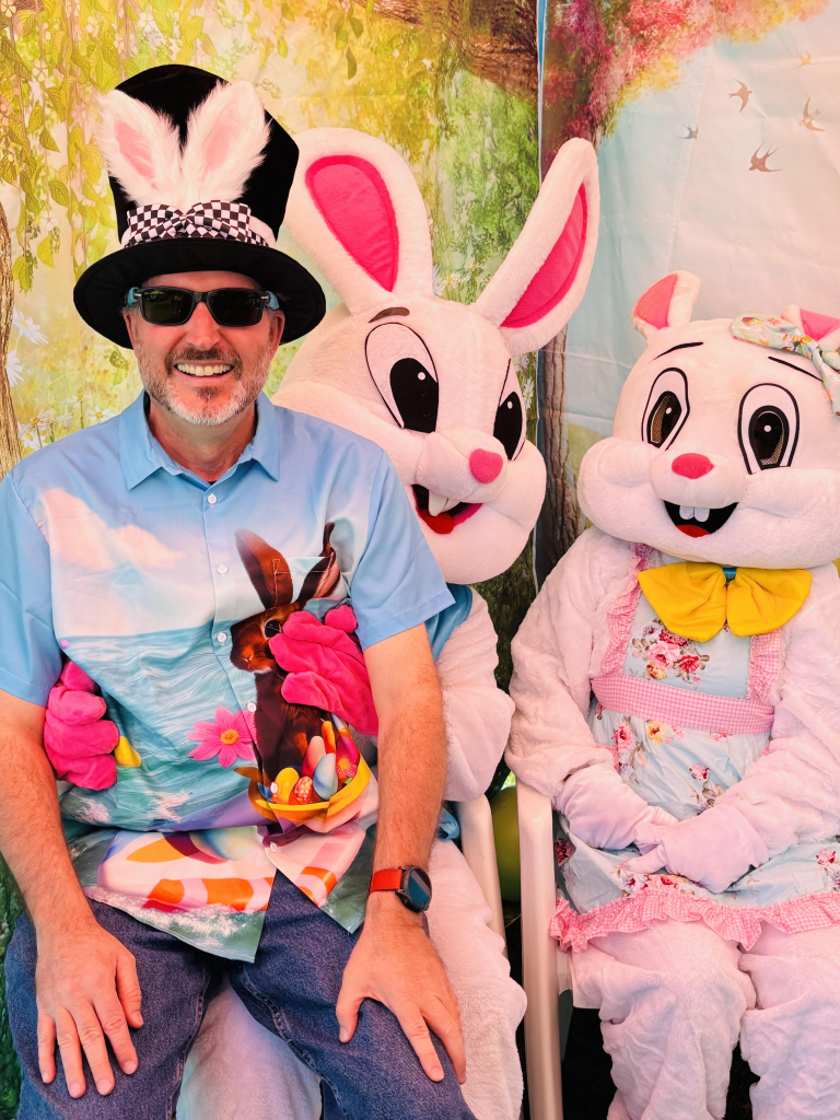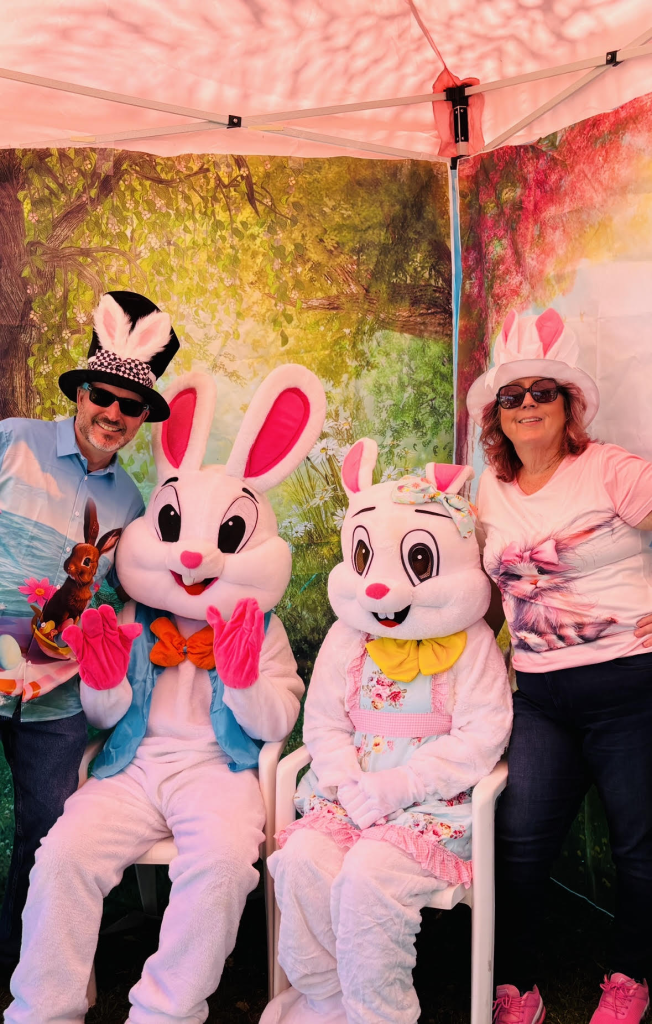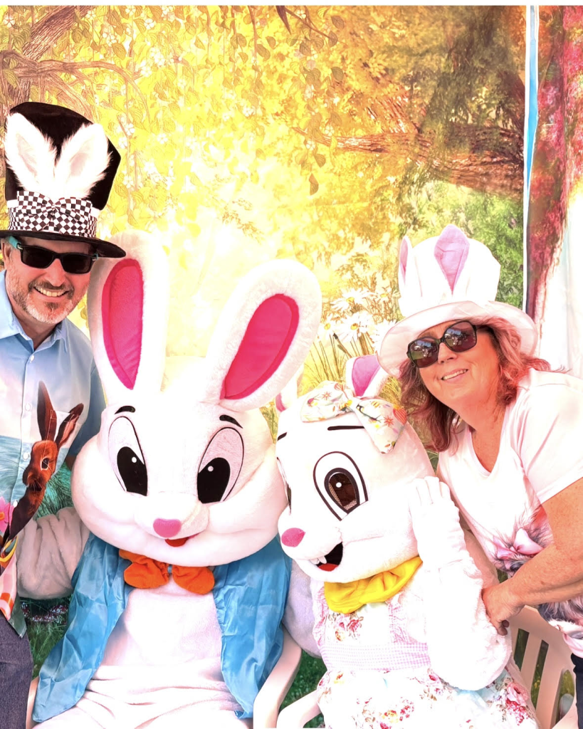 Below is John and I with Mr. and Mrs. Easter Bunny: