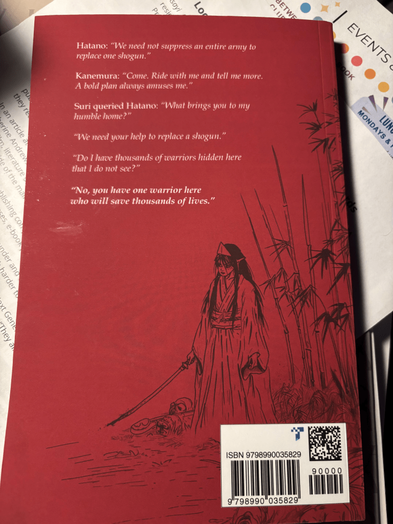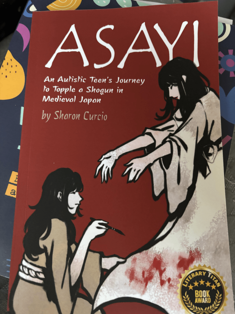 Just when I thought I couldn’t walk any higher than cloud 9, I was elevated to cloud 10. Not only was Sharon Curcio the author of “Asayi, an autistic teen’s journey to Topple a Shogun in Medieval Japan” our guest speaker, a second author joined the event. While we didn’t talk about Heather’s book at this event, not yet anyway because she will be the author for the library’s upcoming coffee with the author on June 25th, I was able to meet her as well.