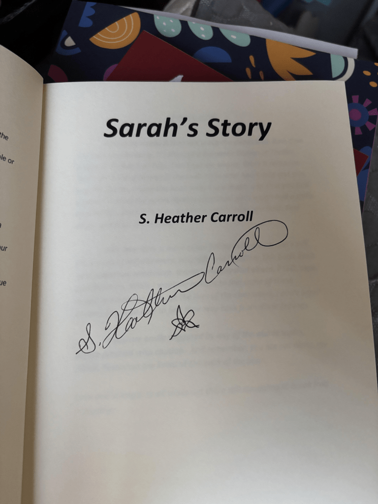 Kathy and I got a chance to talk with Sharon after the event and Kathy even picked up a copy of Sharon’s book and she’s letting me read it first. I hope to start tomorrow.