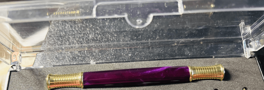 Below are a couple photos of the pen. Notice the detail. He even did it in purple because he knows it’s my favorite color.