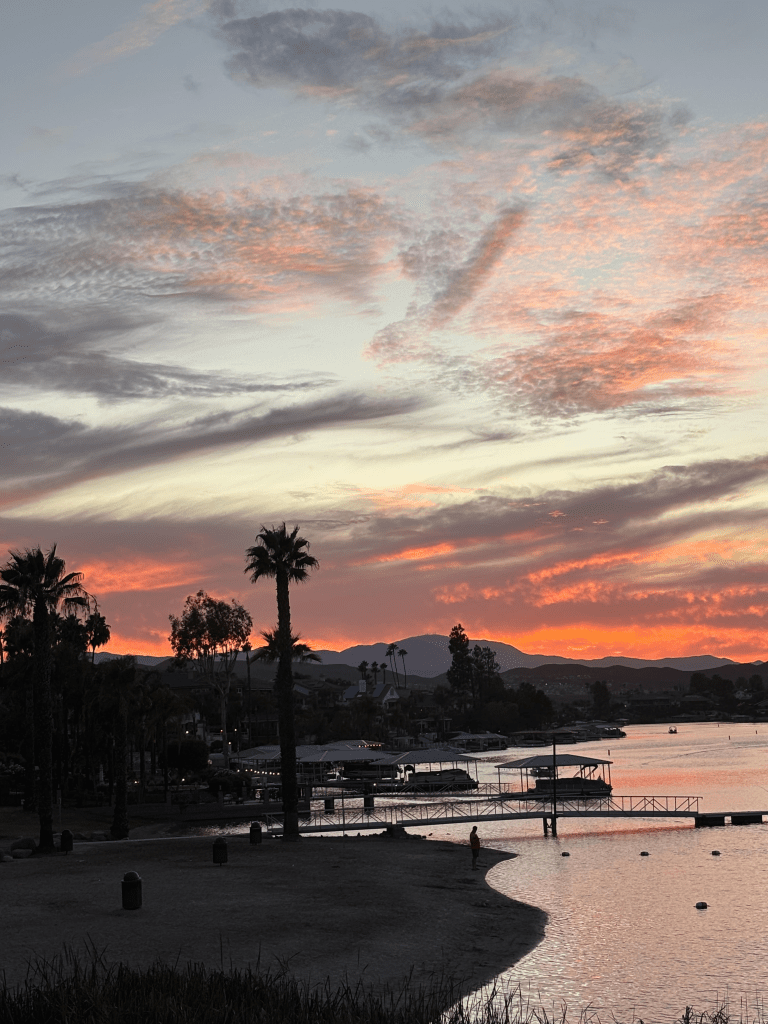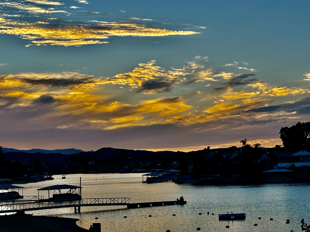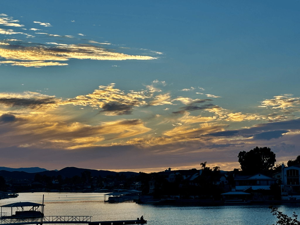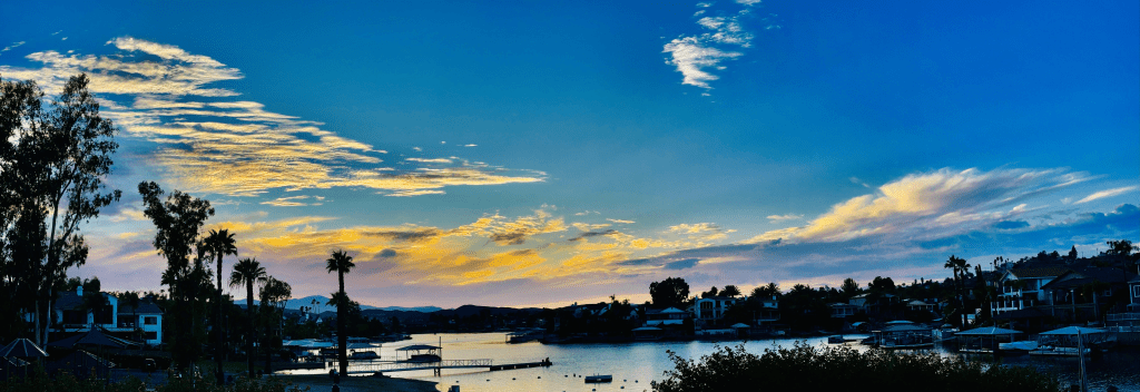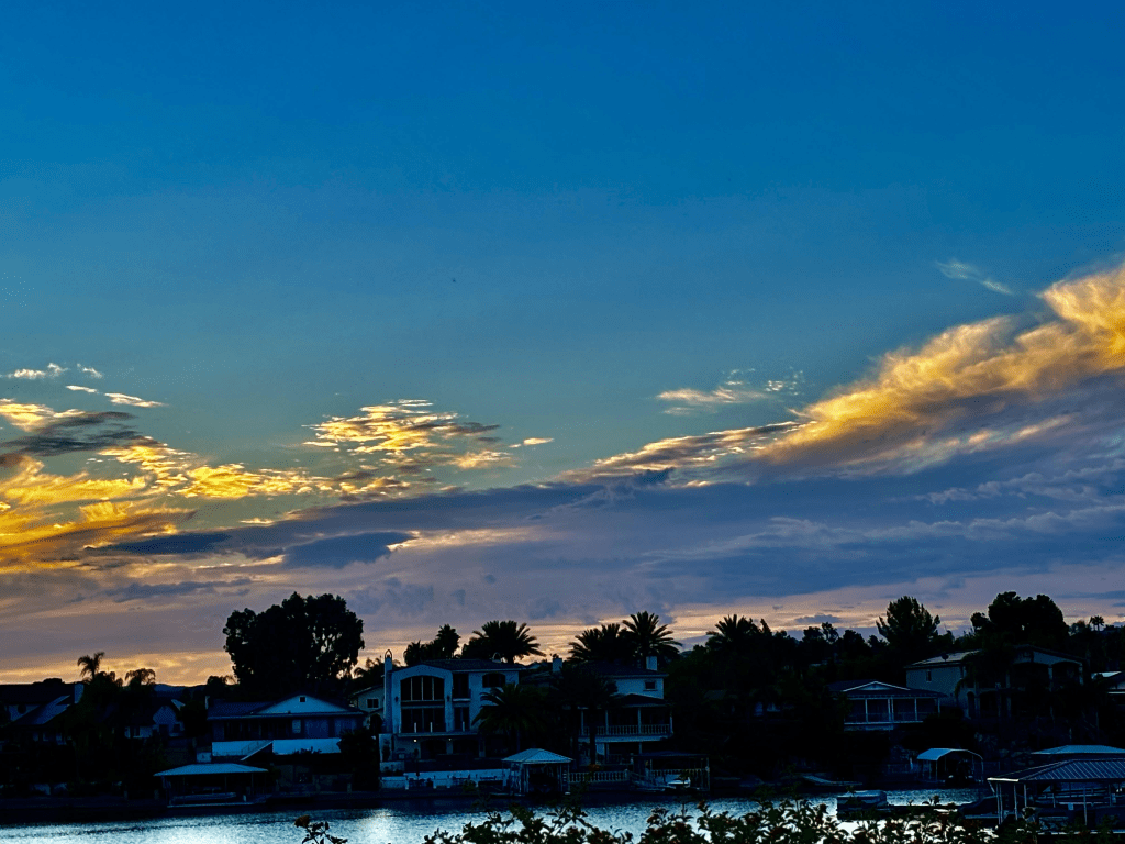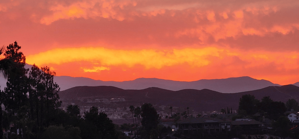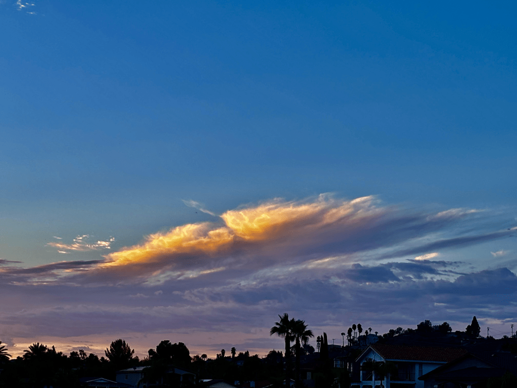 I went out to the pool this afternoon with some gal friends. We swam. We talked. I even had a High Noon. Yummy. Anyway, after swimming I went out to watch this incredible sunset. One of the greatest I’ve been blessed to see, or maybe it was extra special because I fully embraced every part of it. John joined me along with my friend Sandy. John said, “look at that sky, God is painting us an amazing sunset isn’t He.”