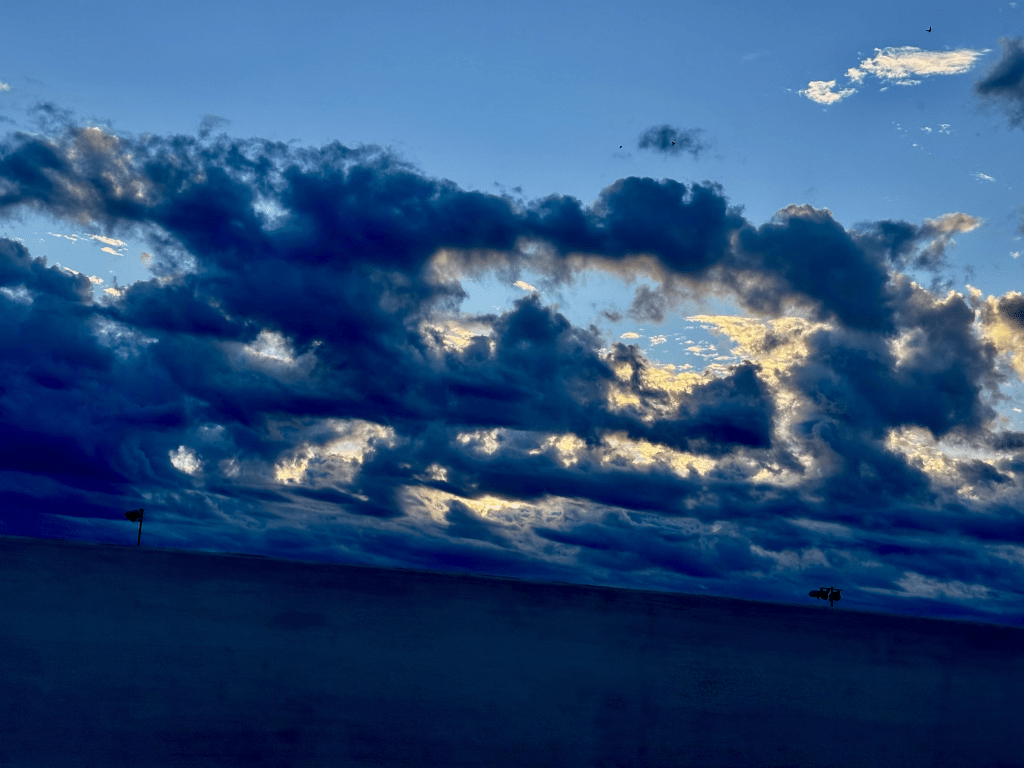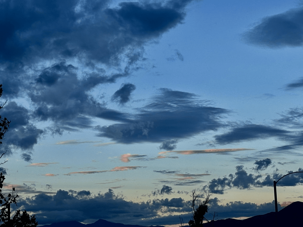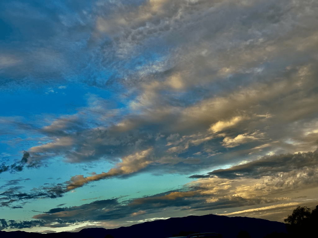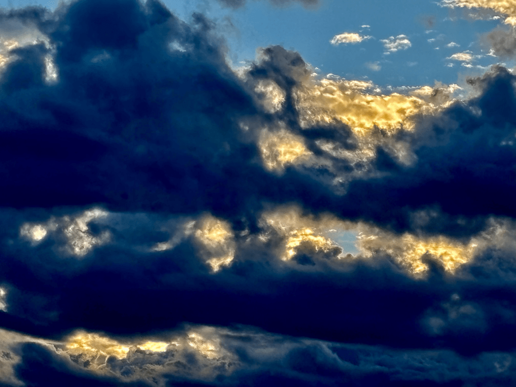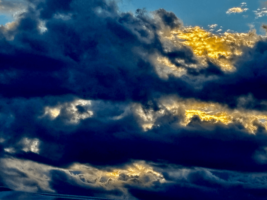 I believe wholeheartedly that God gave me this incredible morning welcome. The clouds and sky have a story to tell. They have answers within their formations. They are strong, unique and full of ever-changing life.