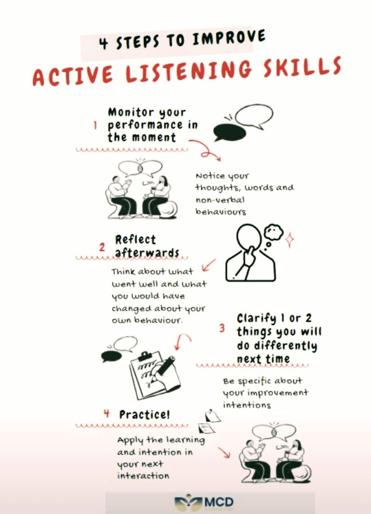 Step 1. Practice active listening. Boy is this one harder than it seems. Really listening requires us to hear and feel another person’s emotions. We need to listen without thinking ahead of what our response will be. Just listen with the only thought being, I’m hearing you.