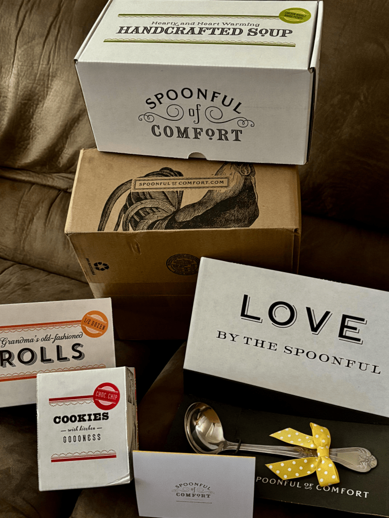 In my boxes I received some yummy chicken and potato soup, some dinner rolls and chocolate chip cookies to enjoy for dessert. I even have a keepsake ladle in which I’ll proudly use for holiday functions and when I pull it from its space in my kitchen drawer, I’ll be reminded of the kindness bestowed upon me by a woman I’ve never had the honor of meeting.