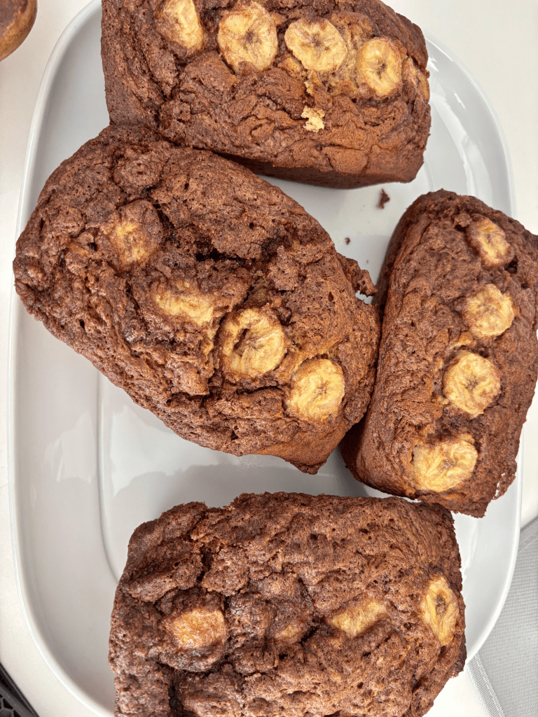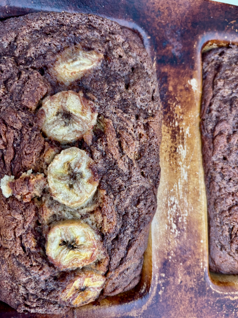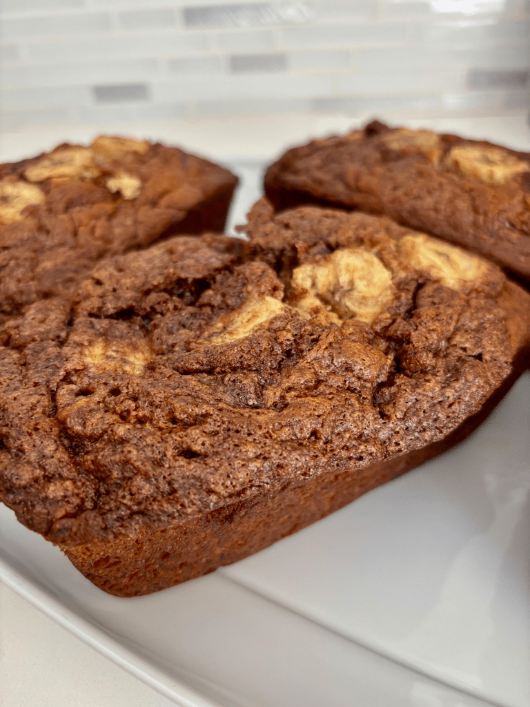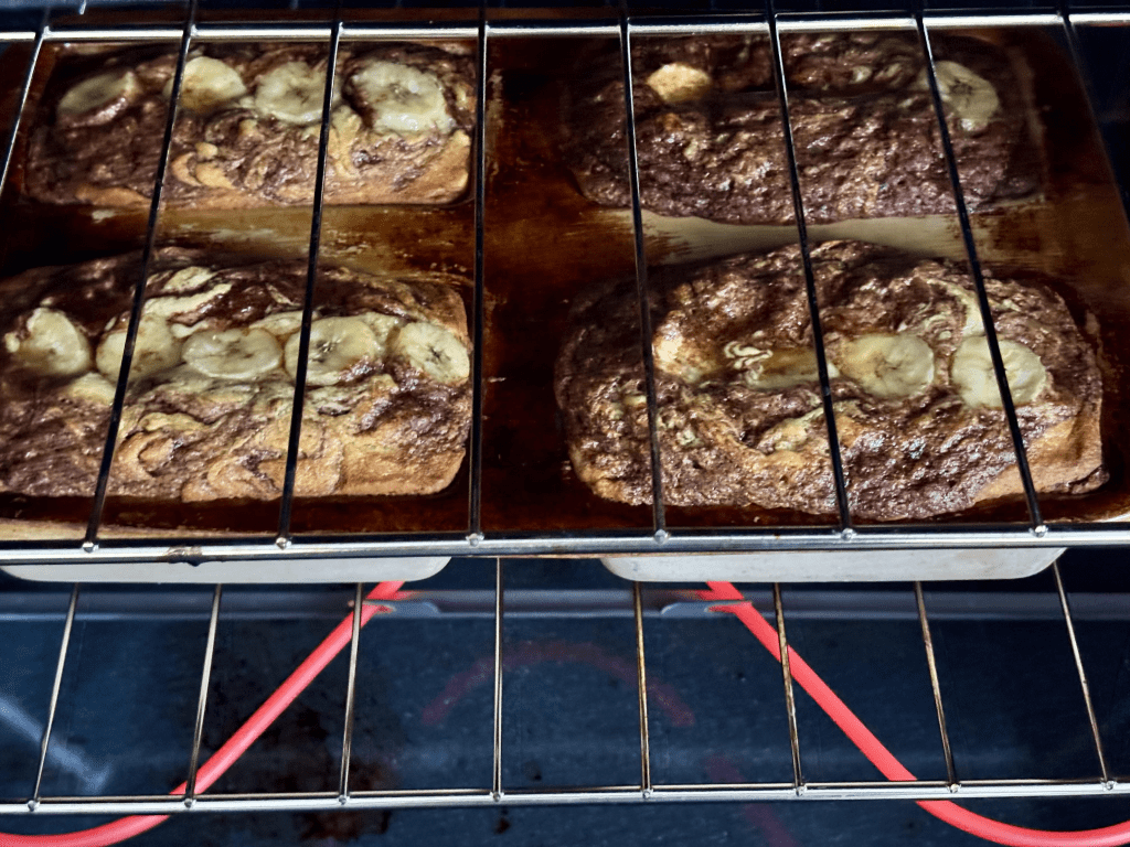 Below are a few photos of the amazing banana bread I made. I used my mini loaf pan, so I was able to make 4 loafs.
