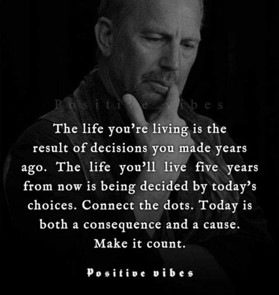 Then I saw this quote and I’m connecting the dots. If we live our lives with negativity. If we live our lives pursuing the riches of the world instead of harvesting the gifts of our family and friends, well, who knows, the consequences may be that one day we have nobody.